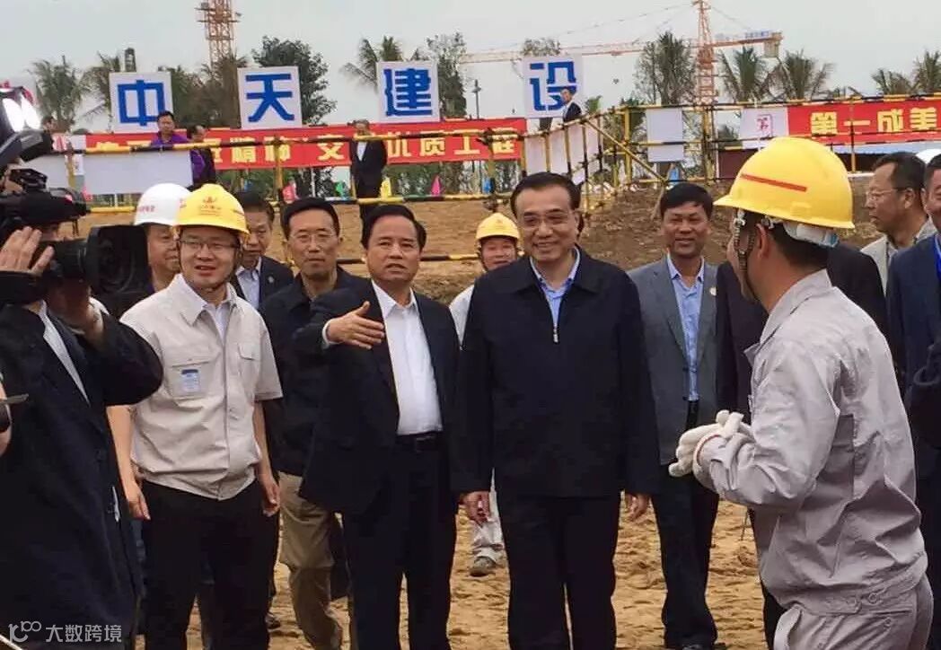 2016年3月25日上午,李克强总理在海南省委书记罗保铭、省长刘赐贵的陪同下,视察博鳌乐成国际医疗旅游先行区建设情况,并来到由中天建设施工总承包的海南省肿瘤医院成美国际医学中心项目部视察慰问,总理勉励中天人发扬工匠精神,争做国家脊梁!