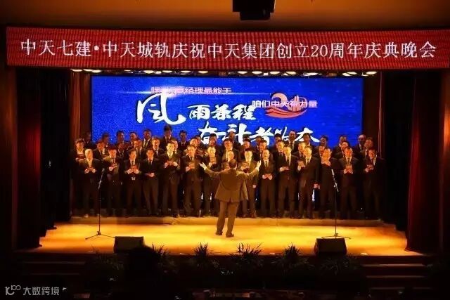 2016年11月22日,中天集团创立20周年(广州)庆典晚会在广州广播电视大学礼堂隆重举行,来自中天七建、中天城轨、中天钢构、中天装饰等中天集团在粤机构的同仁、家属以及集团嘉宾、社会嘉宾共400余人出席了晚会。晚会分三个篇章,并通过员工演绎的三首司歌开场。晚会最后,中天控股集团董事吴金元亲自上阵,指挥项目经理团队五十余人合唱改编歌曲《咱们中天有力量》,振奋人心的歌声为晚会划上了圆满的句号。
