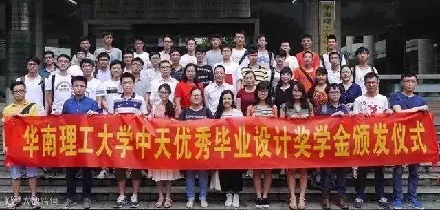 2016年6月16日上午,华南理工大学“中天优秀毕业设计奖学金”颁发仪式在华南理工大学五山校区交通大楼604学术报告厅举行,中天建设集团副总裁、七建总经理吴险峰为40名“中天优秀毕业设计奖学金”获得者颁奖,奖金共计5万元。