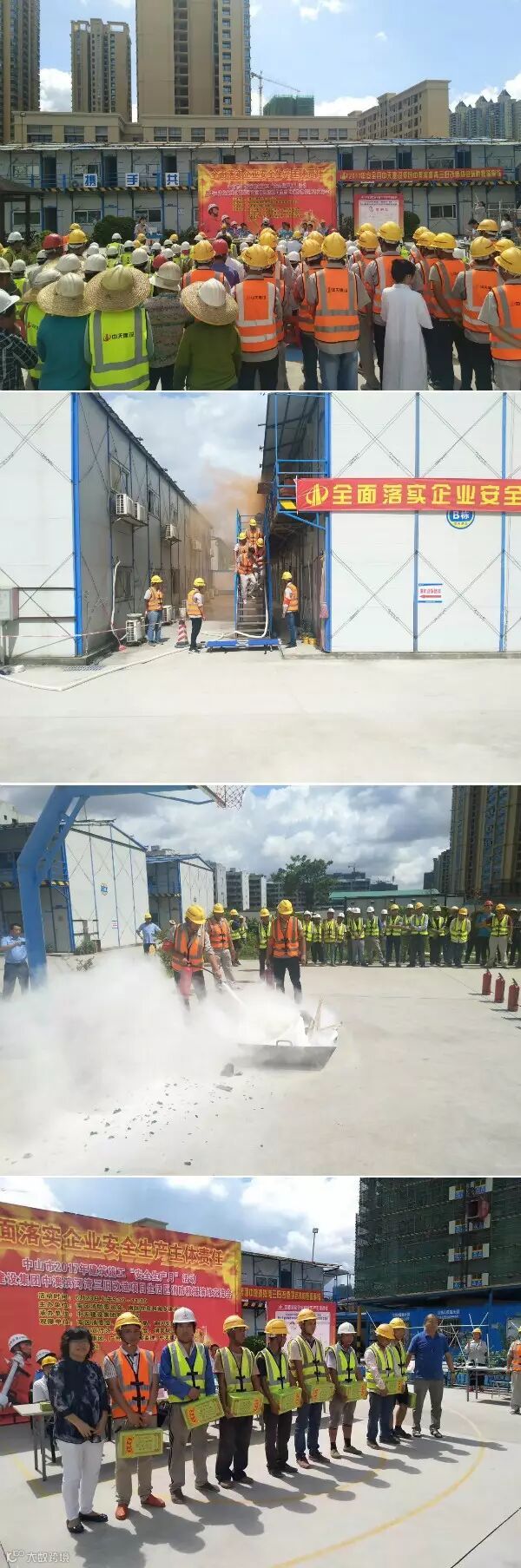 6月23日上午,中山市2017年建筑施工“安全生产月”活动暨消防救援演练交流会在中澳滨河湾三旧改造项目生活区举行(项目经理黄俊)。本次活动由南区消防委员会、南区住房和城乡建设局主办,中天建设集团有限公司承办。