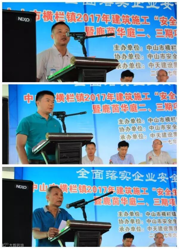 会议伊始,中天七建中山分公司经理黄骏致欢迎辞,随后,市、镇住建局领导分别作了讲话,接着,进行了安全科普教育、告别违章宣誓及高温慰问活动,会议最后镇领导作了总结讲话。会议环节结束后,与会人员一起前往现场进行观摩交流。