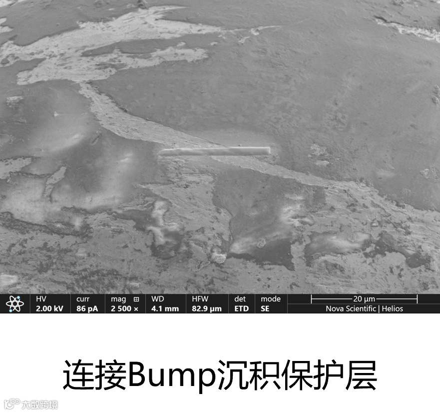 使用聚焦离子束挖开样品表面,并对截面部分进行精修,使截面平滑,形貌细节更清晰明显。