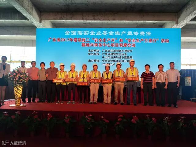 6月2日,广东省2017年建筑施工“安全生产月”和“安全生产万里行”活动启动仪式暨现场观摩交流会在东莞举行,此次安全月活动全省共设深圳、珠海、中山3个分会场,其中,中山分会场设在由中天建设集团承建的中山迪兴商务中心项目。