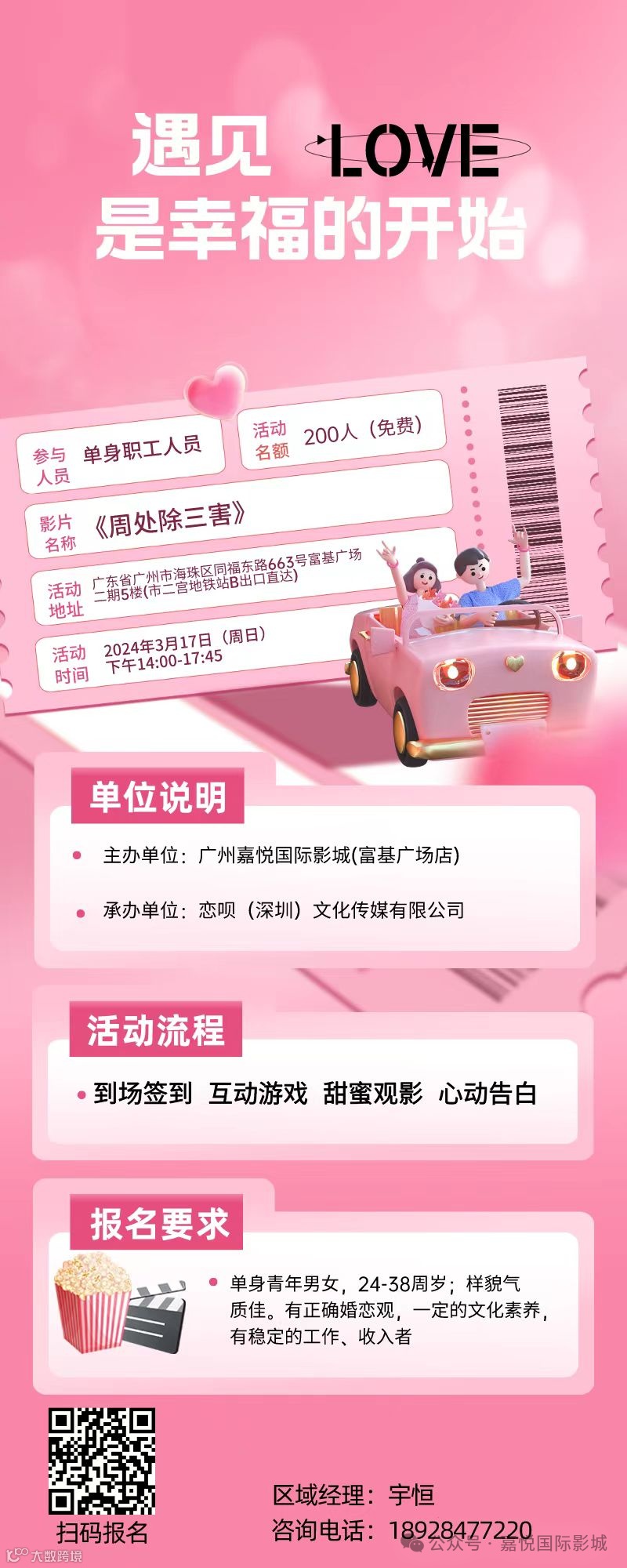 📍活动地点:广州市海珠区同福东路663号富基广场二期5楼(市二宫地铁站B出口直达)一一嘉悦国际影城