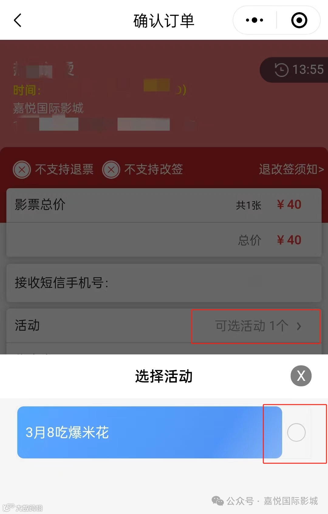 在支付页面勾选对应活动参与