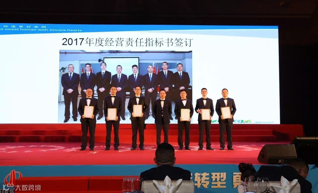 ( 楼董事长与集团卓越贡献奖和重大贡献奖获得者合影)