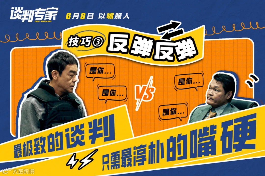 5月16日,电影《谈判专家》发布一支“谈判秘籍”版短预告及一组新媒体图。生活中处处是谈判,面对沟通的窘境怎么办?预告用轻松娱乐的方式拆解了片中涉及的谈判技巧,一“攻心”,二“闭麦”,三“反弹”,简单易懂、贴心实用,也更令人期待影片中精彩的谈判过程。