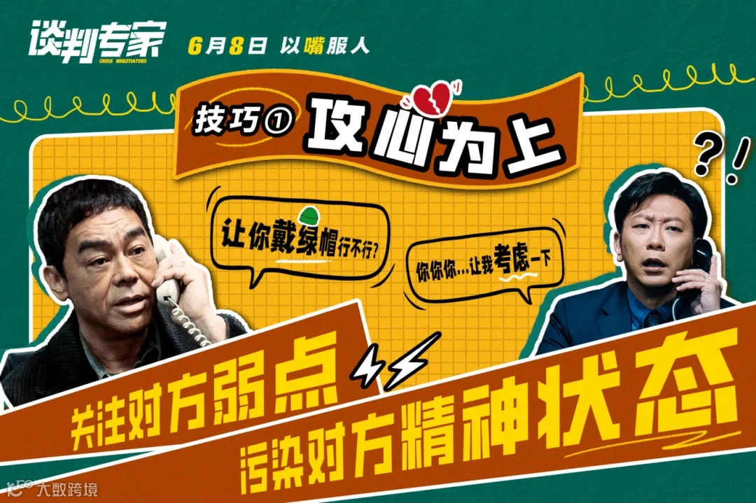 5月16日,电影《谈判专家》发布一支“谈判秘籍”版短预告及一组新媒体图。生活中处处是谈判,面对沟通的窘境怎么办?预告用轻松娱乐的方式拆解了片中涉及的谈判技巧,一“攻心”,二“闭麦”,三“反弹”,简单易懂、贴心实用,也更令人期待影片中精彩的谈判过程。