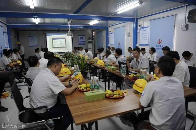 上午,全体与会人员分成三组观摩了万科碧海蓝湾一、四期两个项目。首先与会人员在项目会议室听取了项目情况汇报,随后对项目施工深化设计、集中加工、主体、砌体、质量通病防治等方面进行观摩。
