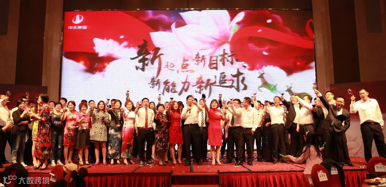 表彰大会之后,中天七建举行了招待晚宴。控股集团常务副总裁赵丹薇致祝酒词。赵总表示中天七建蒸蒸日上的业绩、团结合作的氛围给她留下了深刻印象,并真诚祝愿坚持“四有”、“四化”的七建人,在追求“四新”(新起点、新目标、新能力、新追求)的路上越来越好。