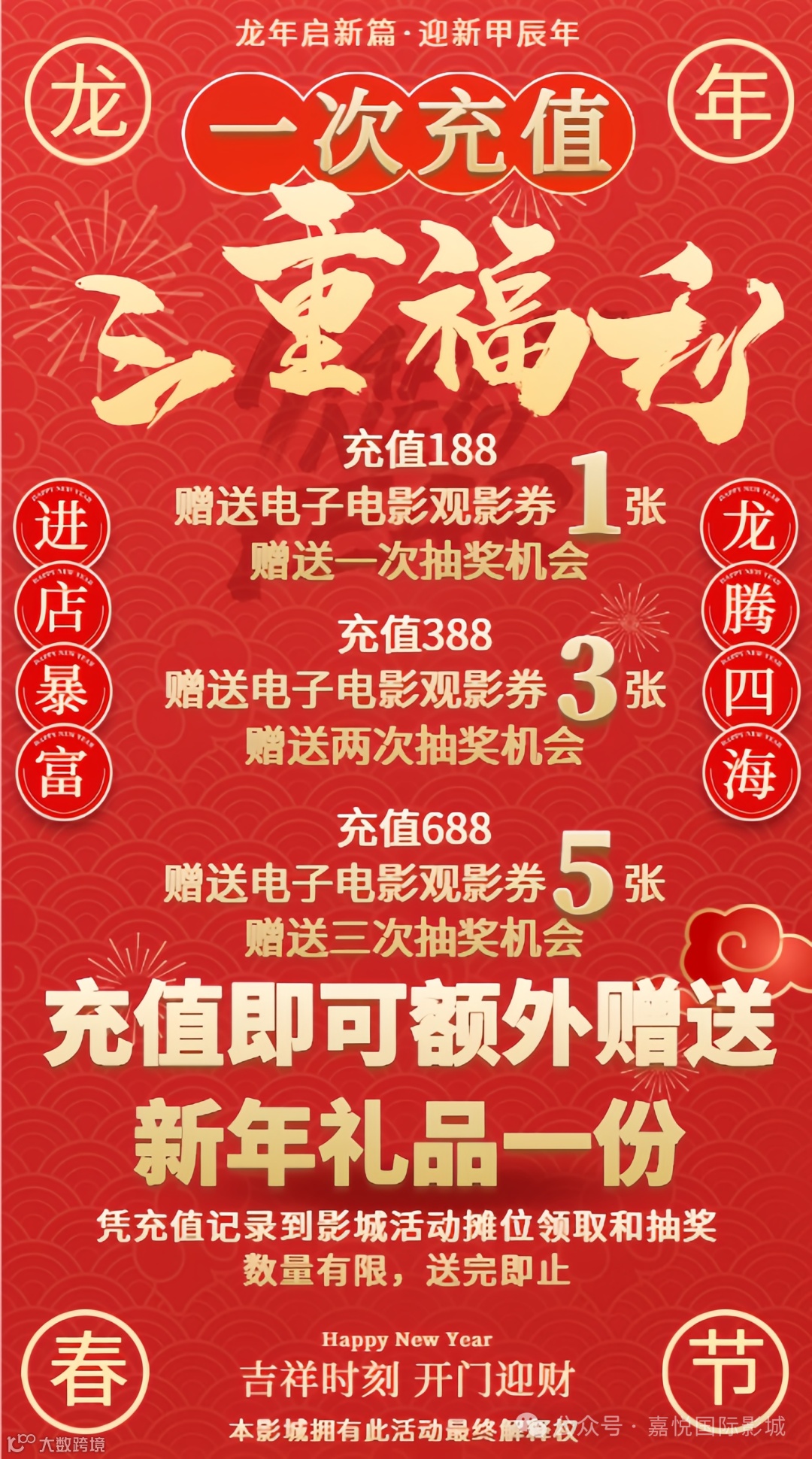 【嘉悦国际影城】会员一次充值,三重惊喜 嘉悦国际影城