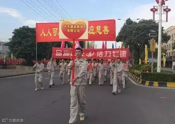 2016年12月30日,为积极响应横栏镇2017年慈善万人行活动号召,营造互帮互爱、融洽和谐的良好氛围,丰富团队文化活动,黄俊项目团队横栏代表队全体管理人员、班组长及带班一行30余人参加了横栏镇举行的2017年以“博爱助医,健康你我”为主题的慈善万人行活动。当天参与巡游及仪仗、表演的队伍达78支,参与人员超8000人,黄俊项目团队横栏代表队着中天工装,执中天建设五彩旗,举“人人可慈善,人人应慈善”、“品牌中天,活力七建”、“立志中天,争创一流”的口号标语,整齐有序,信心满满,展示了中天人的活力和风采。