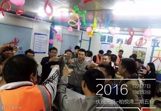 为进一步推进项目文化建设,丰富项目文化生活,同时向员工传递家文化的温暖氛围。2016年12月27日晚上,万科柏悦湾二期五标项目部在会议室举行了新年联欢聚餐活动。本次活动邀请了甲方、监理等主要领导到场庆贺,增进了双方的交流,现场欢声笑语不断。