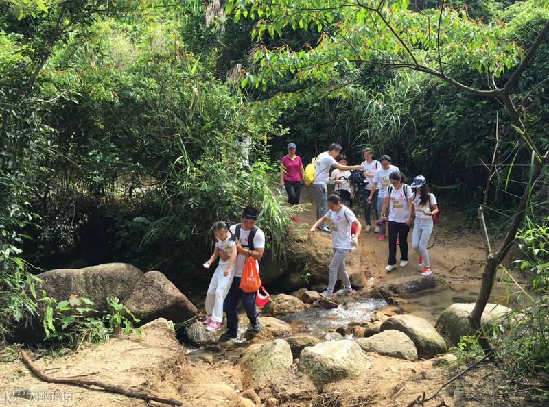大家抛下工作的压力,全身心投入到大自然里,头顶蓝天,脚踏大地,一眼望去,青山绿水映入眼帘,一路上有说有笑,在途中,有山路,有清澈见底的小溪,有坡路,有石路,大家都相互搀扶走过。从不同的角度看,都可以构成一幅非常美丽的风景图画。