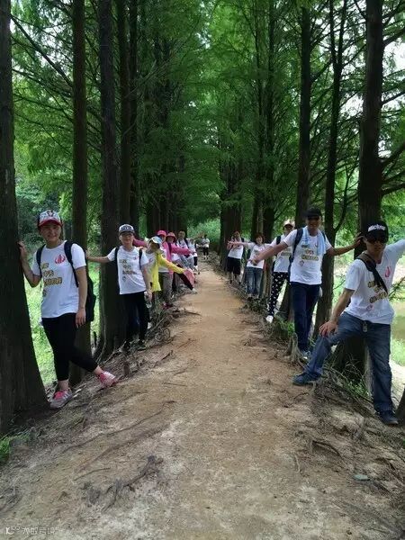 早上8:30,大家如约集合,一同坐车来到了此次徒步的地点——长江福获村,虽说一大早,太阳已经火辣辣,但是大家都怀着期待和憧憬的心情准备踏入这水杉树木之中。为确保此次徒步活动的安全,本次徒步共分三个小组,在徒步前,李玲玲对活动的注意事项进行了讲解,经过热身后便出发。