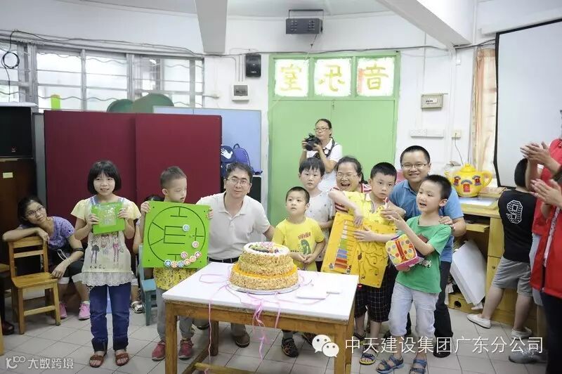 参观完广州科学馆后,中天七建为至灵学校6、7月份过生日的特殊儿童举行了快乐的【生日庆祝】活动。七建副总经理、工会主席何军伟为这群可爱的孩子们送上生日蛋糕和精致的生日礼物。
