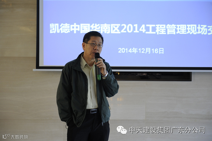 12月16日,凯德置地华南区2014工程管理现场交流会在中天七建凯耀榄核商住地块项目成功召开。凯德置地华南区域总负责人陈明璨,中天建设集团副总裁兼七建总经理吴险峰,凯德营运总经理杨应时,成本总监张东荣以及来自凯德置地各部门、各区域负责人,各项目建设、监理单位近100人参加了大会。