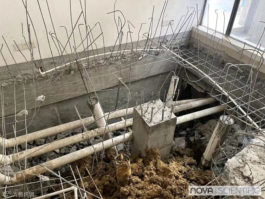 ▲ 由于FIB以及附带的设备非常重,所以必须加固地基。把房间地面全部挖开,打桩、拉钢筋、灌水泥……
