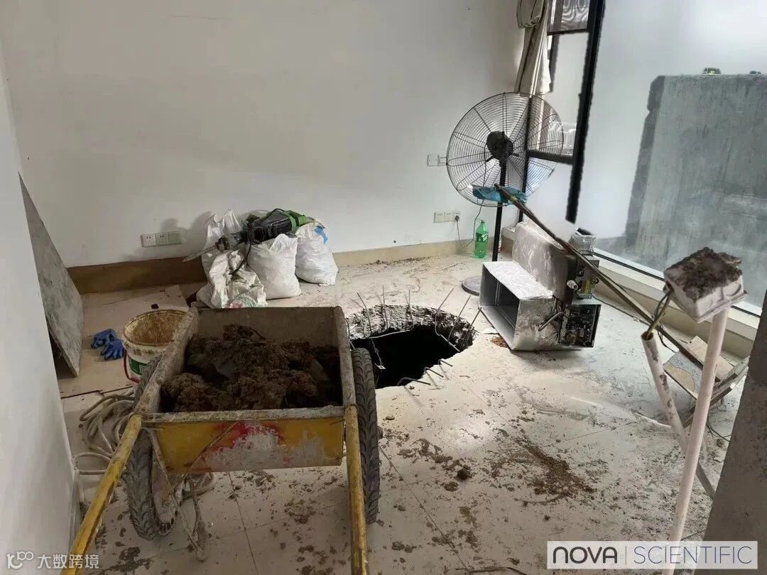 ▲ 凿开一点房间地面,发现下面竟然是空心的 😱