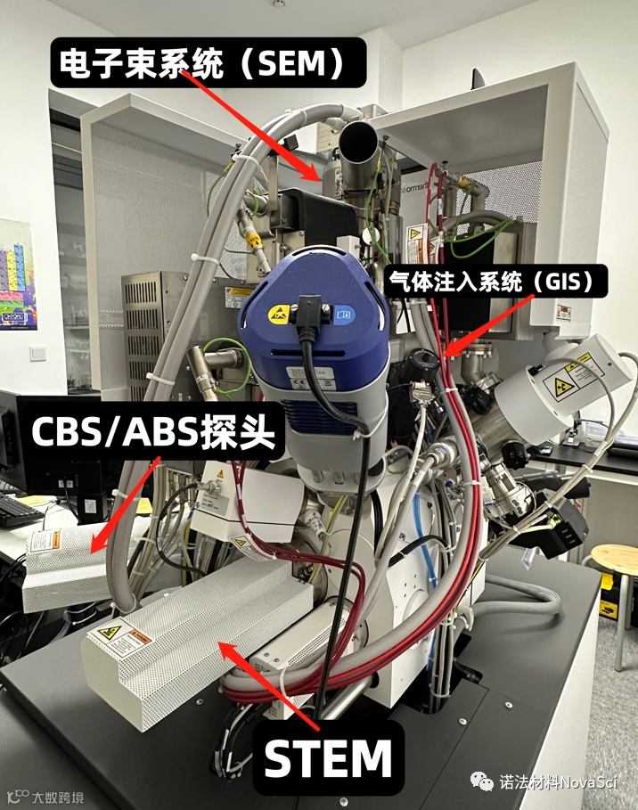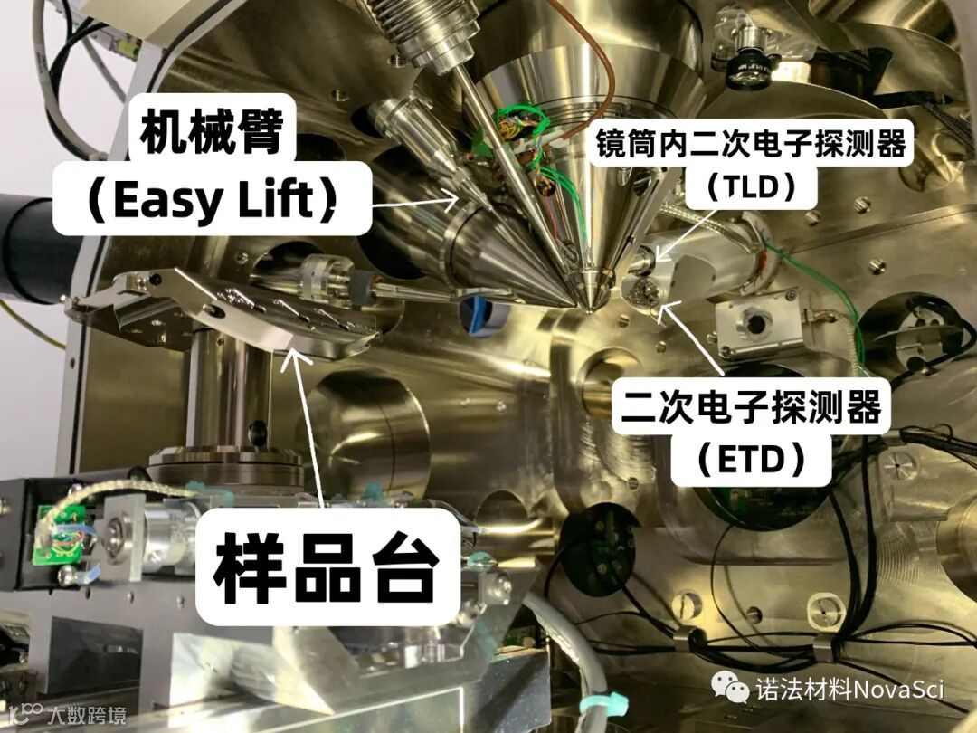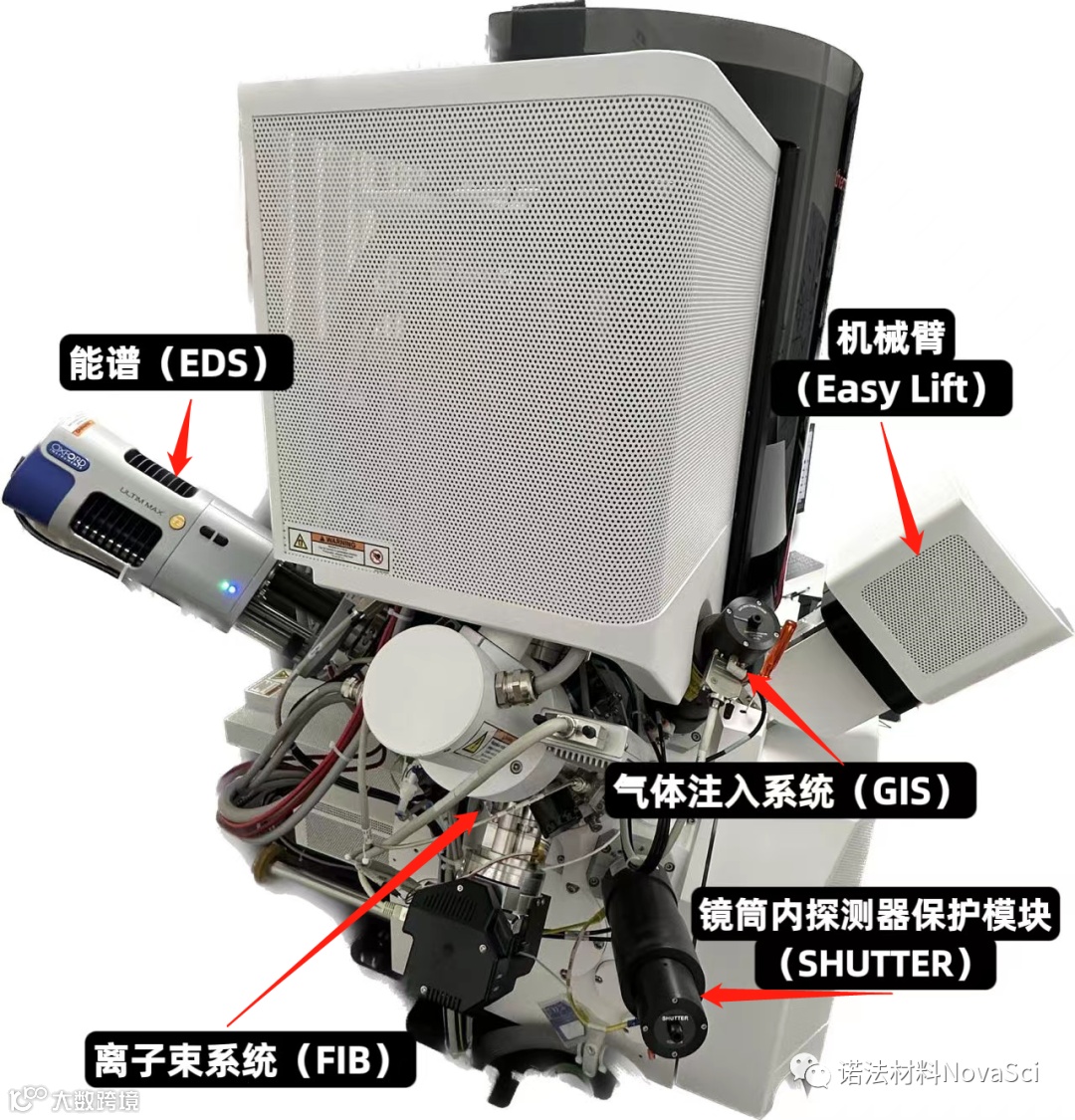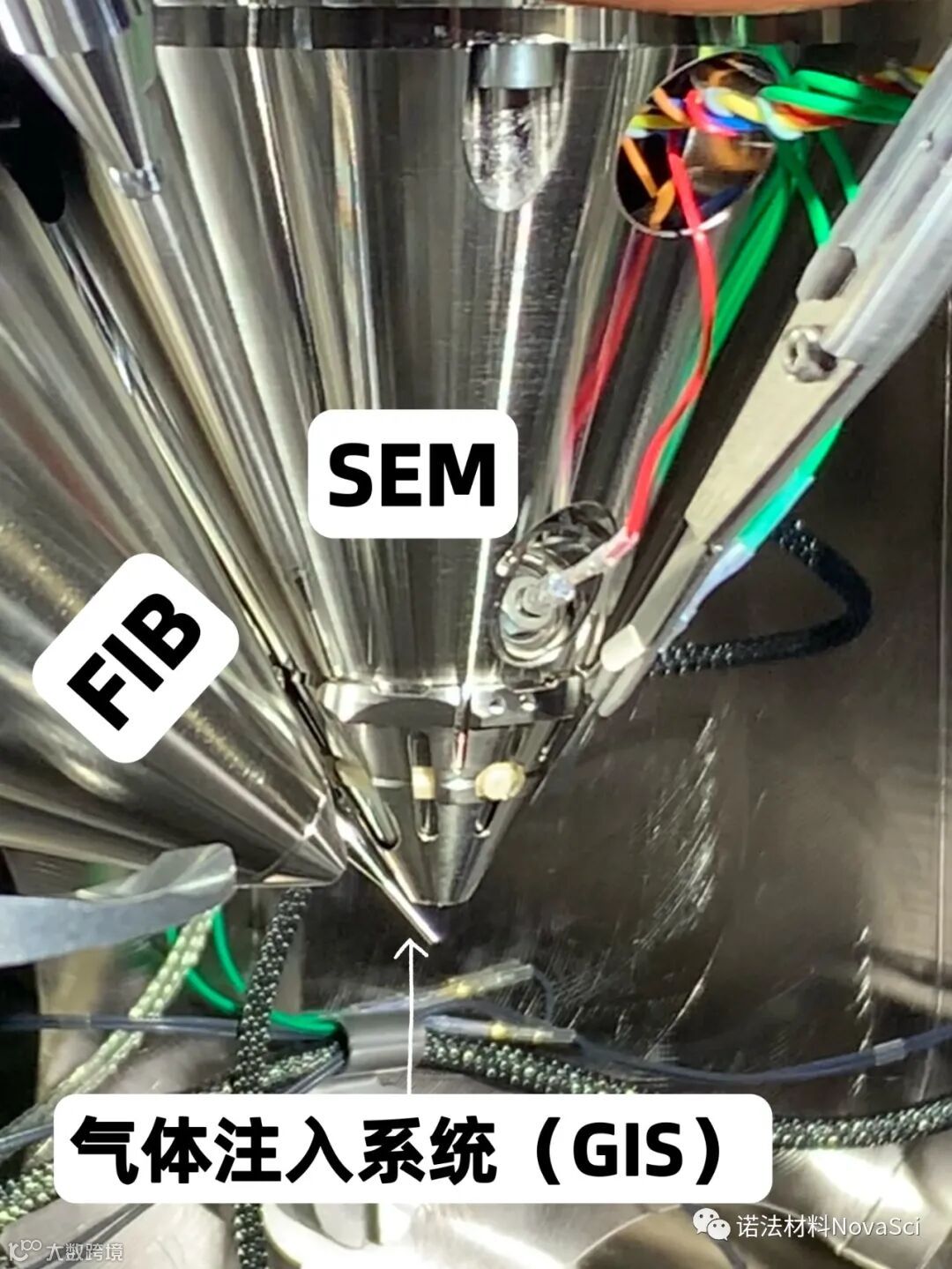 而今天所介绍的;“双束电镜” Dual Beam Focused Ion Beam(FIB)是双束聚焦离子束扫描电子显微镜的简称,是在扫描电镜的基础上加装了离子束系统,机械臂(Easy lift)和气体注入系统(GIS)等配件。(关于结构的具体介绍详见文末)