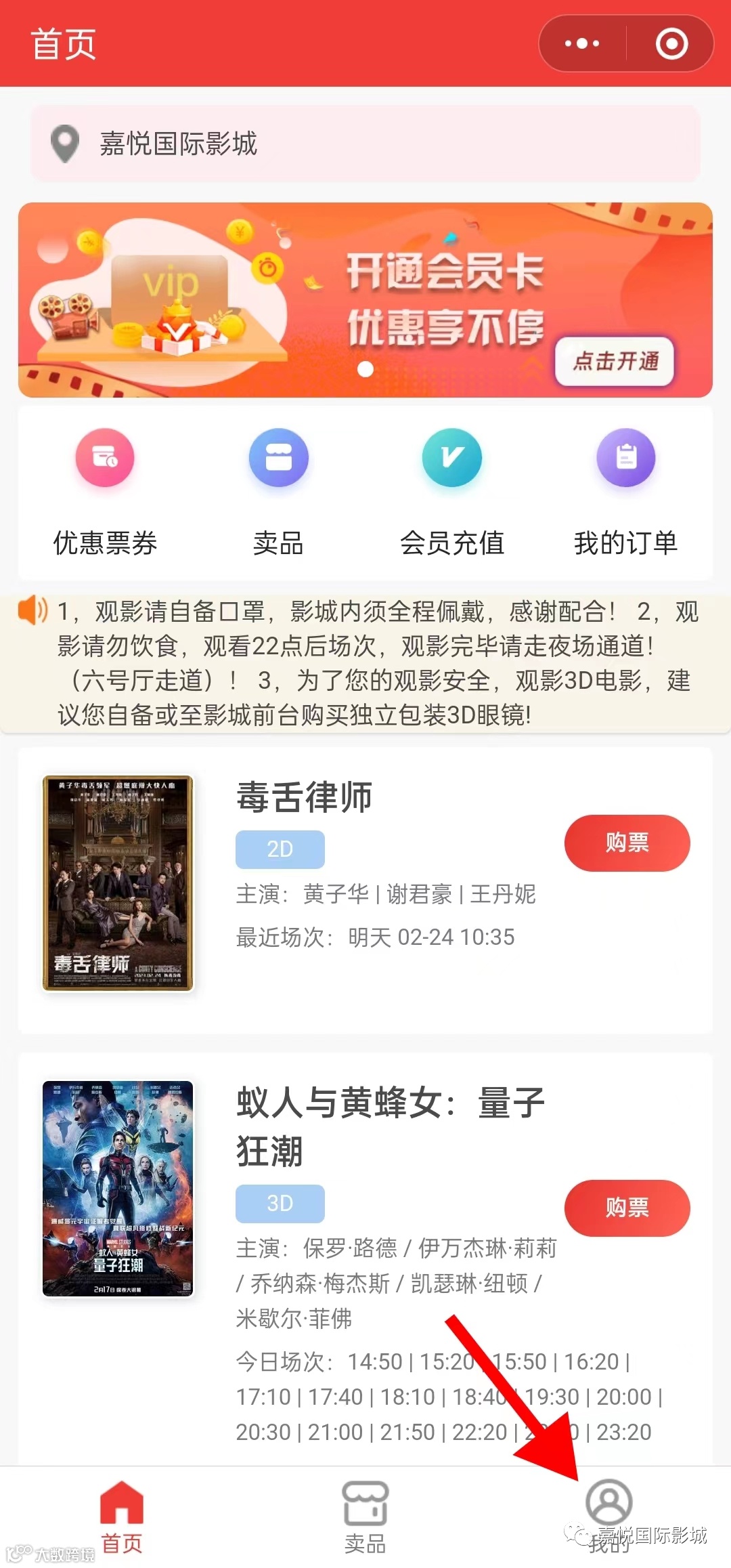 进入购票页面点击“我的”