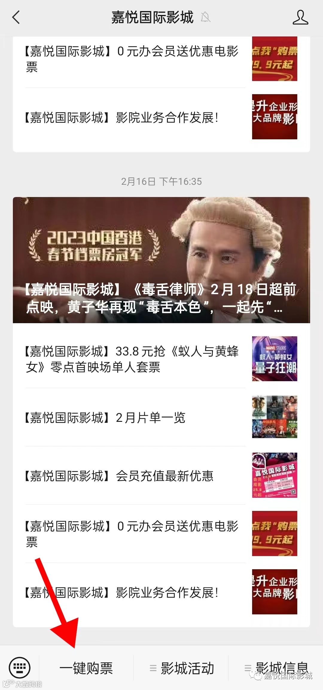 打开广州市嘉悦国际影城公众号——一键购票