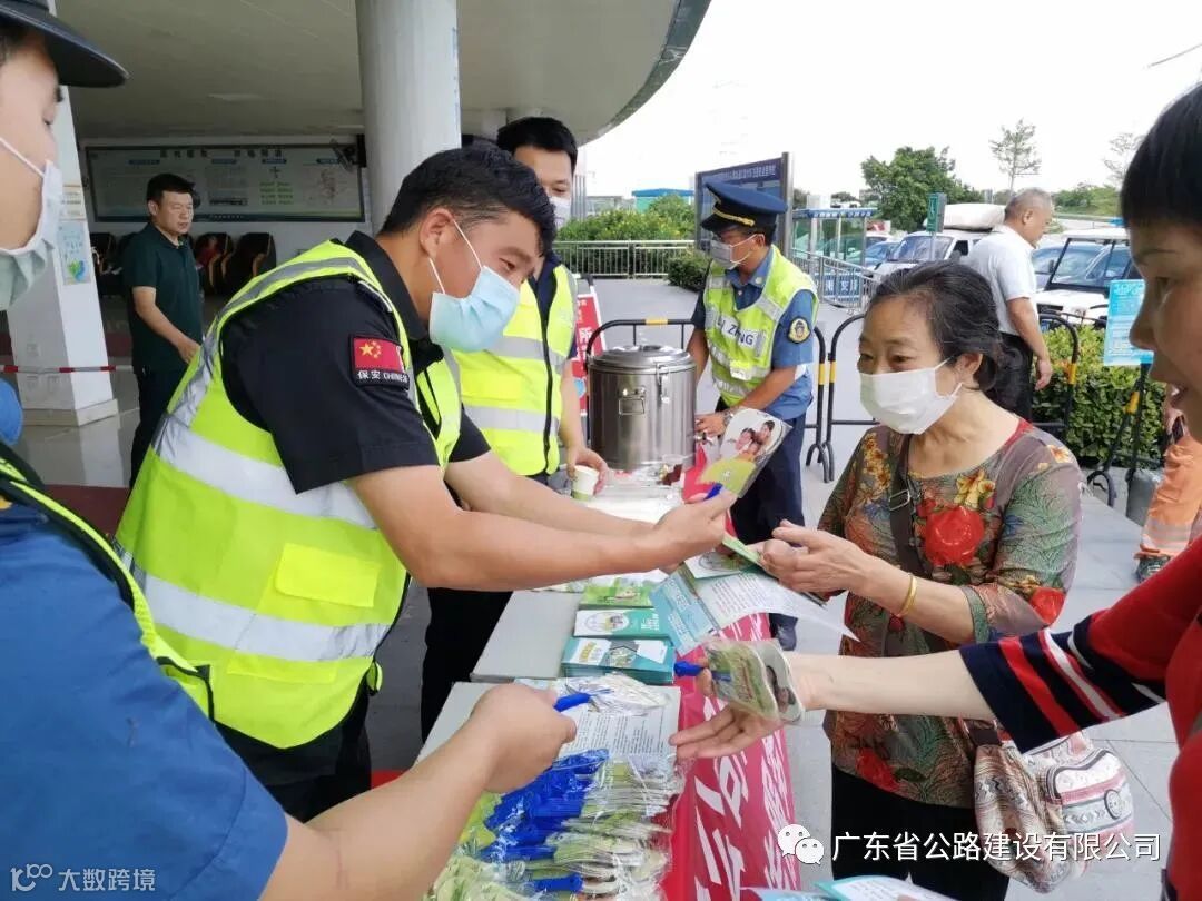 深中通道项目组织开展安全宣传咨询服务日活动,向施工作业人员宣传安全生产知识