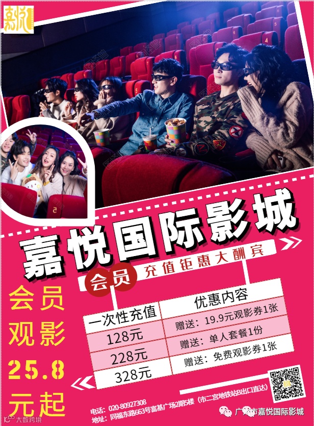 嘉悦国际影城 广州市海珠区同福东路663号富基广场二期五楼(市二宫地铁站B出口直达)