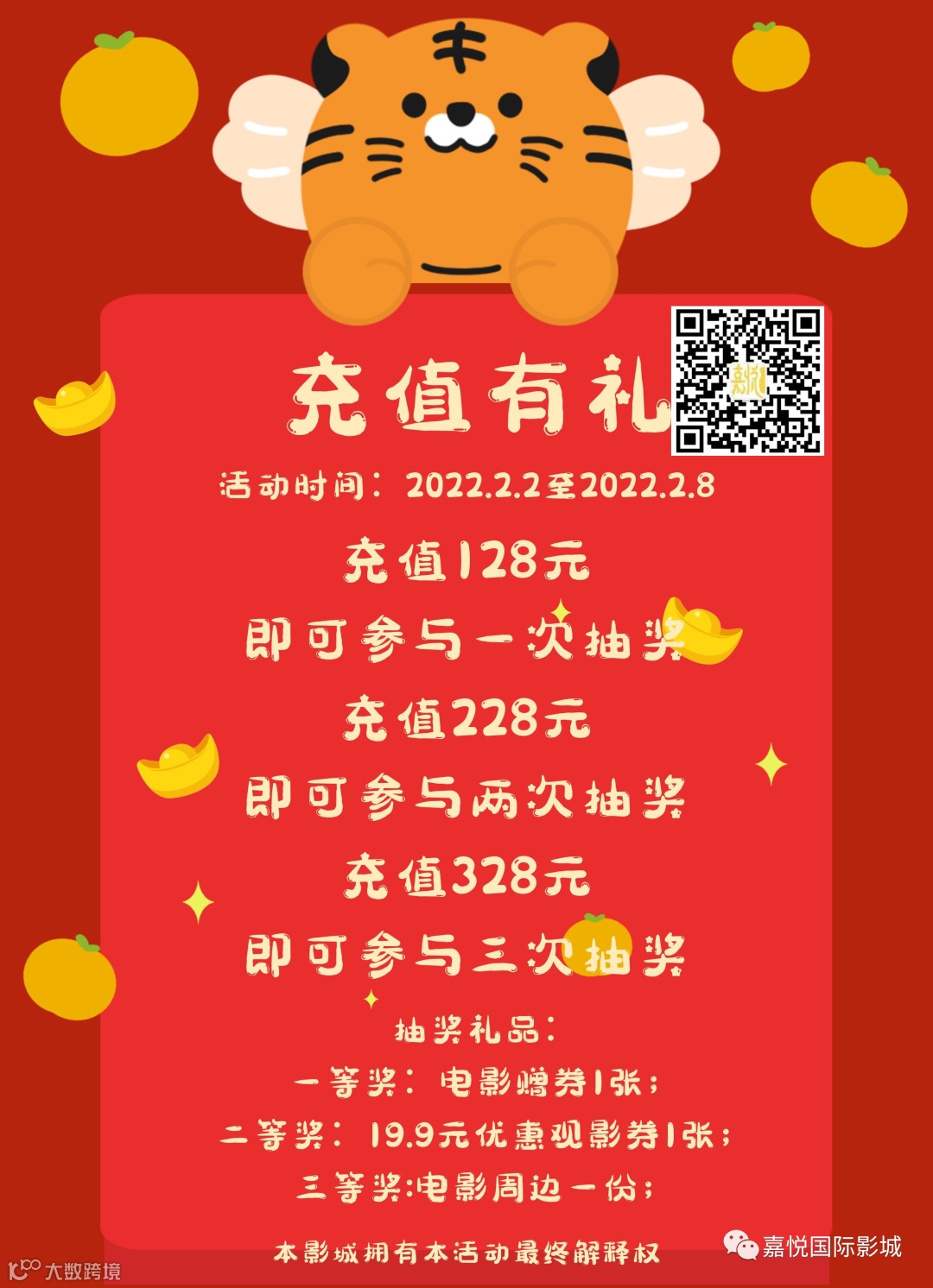 【嘉悦国际影城】新年充值大抽奖 嘉悦国际影城