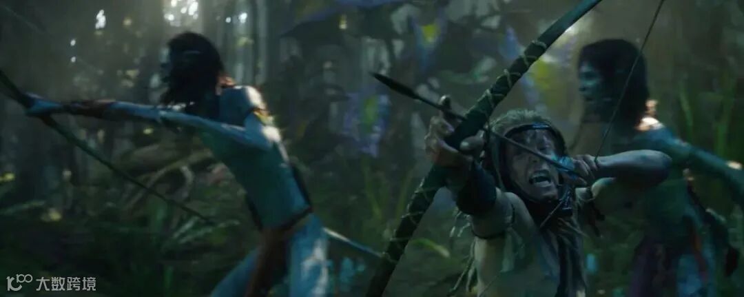 同时,预告片中使用原始弓箭的纳美族和配备各种尖端武器的人类仍然剑拔弩张,显然人类与潘多拉星球原著民的战争也在继续。
