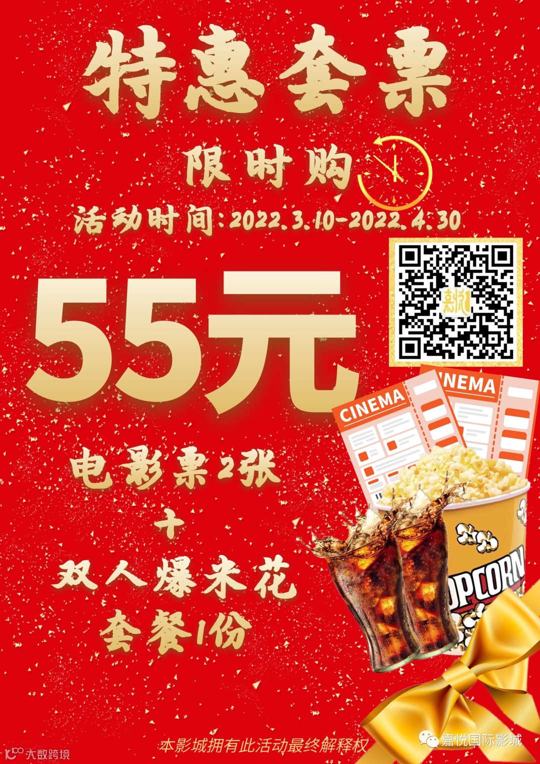不限场次、不限影片、有效期至2022.4.30