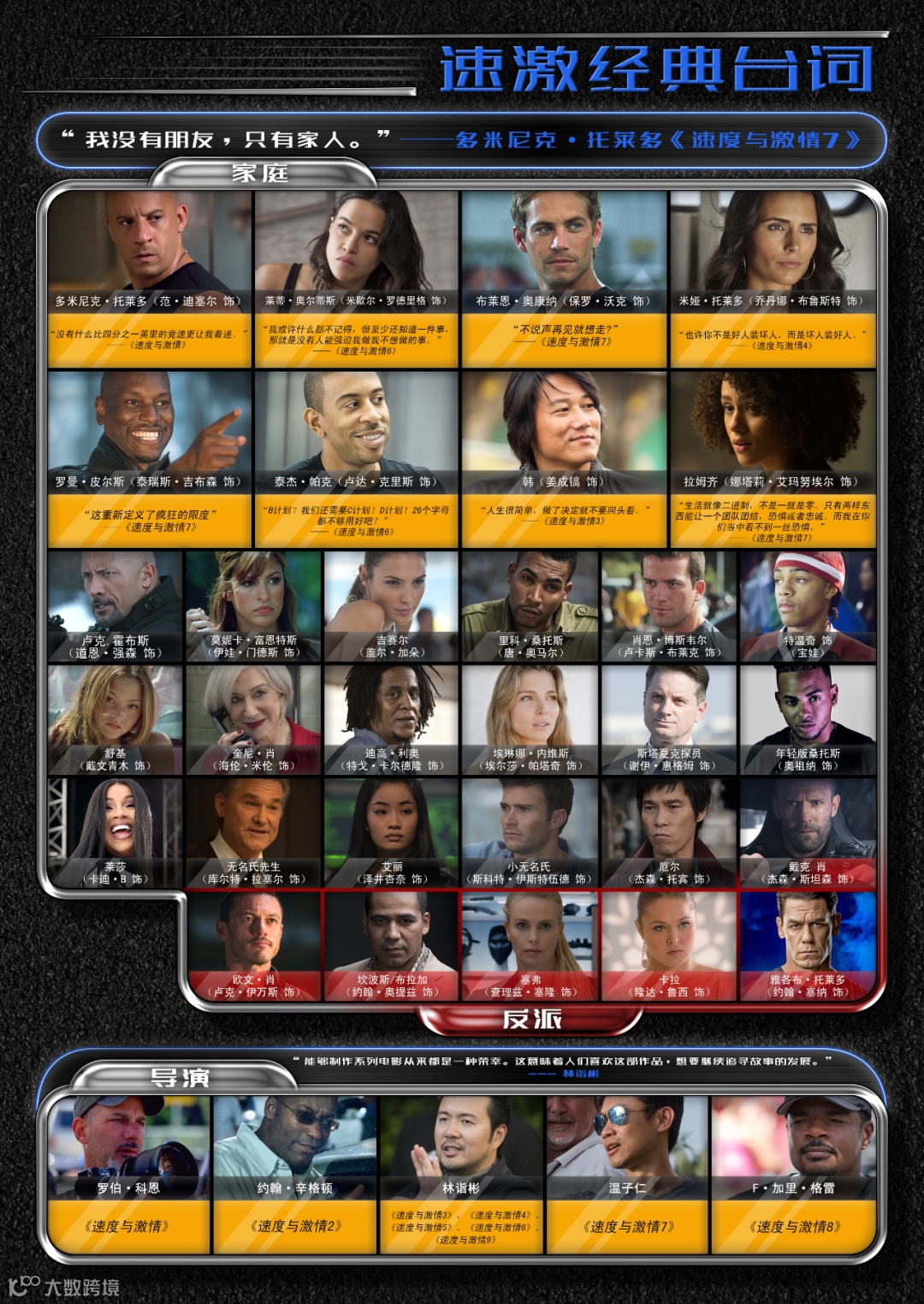 导演林诣彬回归! 此前他曾执导4部“速激”(3、4、5、6) 他称该片是系列“最有雄心”的一部。 ![]()