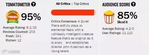 烂番茄新鲜度高达 95%,观众爆米花指数 85%。