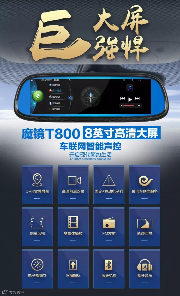 导读:悦途T800 8寸专车专用后视镜行车记录仪前后双镜头导航