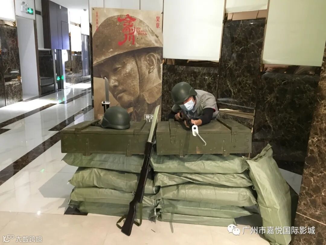 在广州嘉悦影城《金刚川》阵地进行角色扮演拍照,