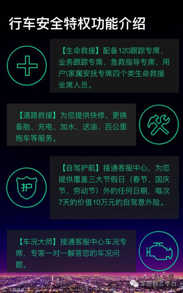 3、全年百公里非高速道路救援拖车不限次数!紧急送油 3次每次3L!还有换备胎 加气加水接电等超值服务项目!
