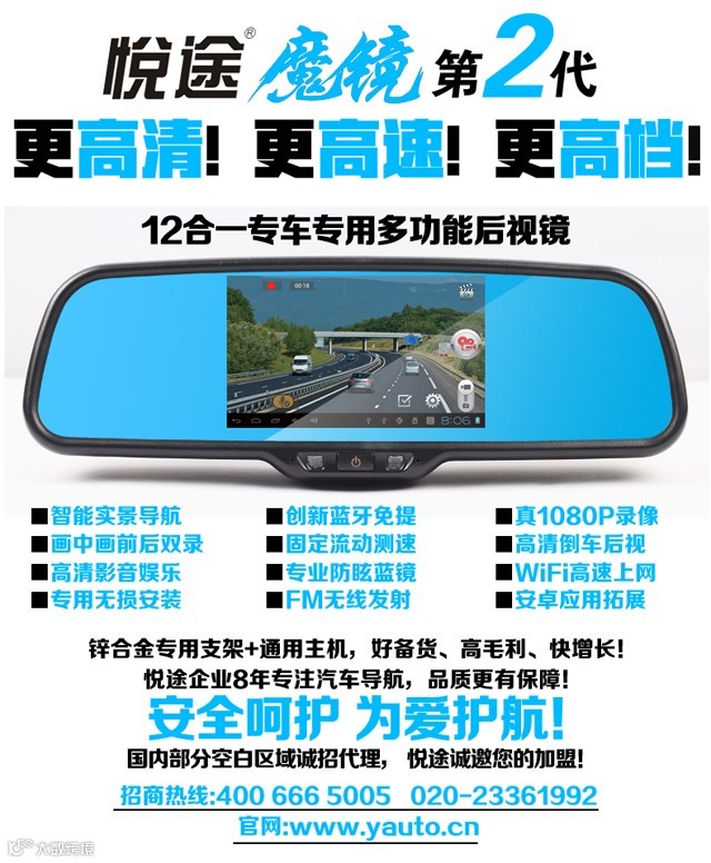那么该如何避免被抓拍呢?最简单的就是不要闯红灯,“宁等三分也不抢一秒”,还有就是在车上装电子狗,在这里小编推荐一款产品--悦途魔镜二代,魔镜采用善领DSA系统,是目前市面上最为成熟的驾驶安全预警仪系统(俗称电子狗),在GPS的支持下,可以提示沿途红绿灯、道路限速等信息点,保证安全,不吃罚单;除了电子狗外还有导航、行车记录等实用功能,采用车内后视镜造型,小巧安装快速,不会影响后视镜原本功能。