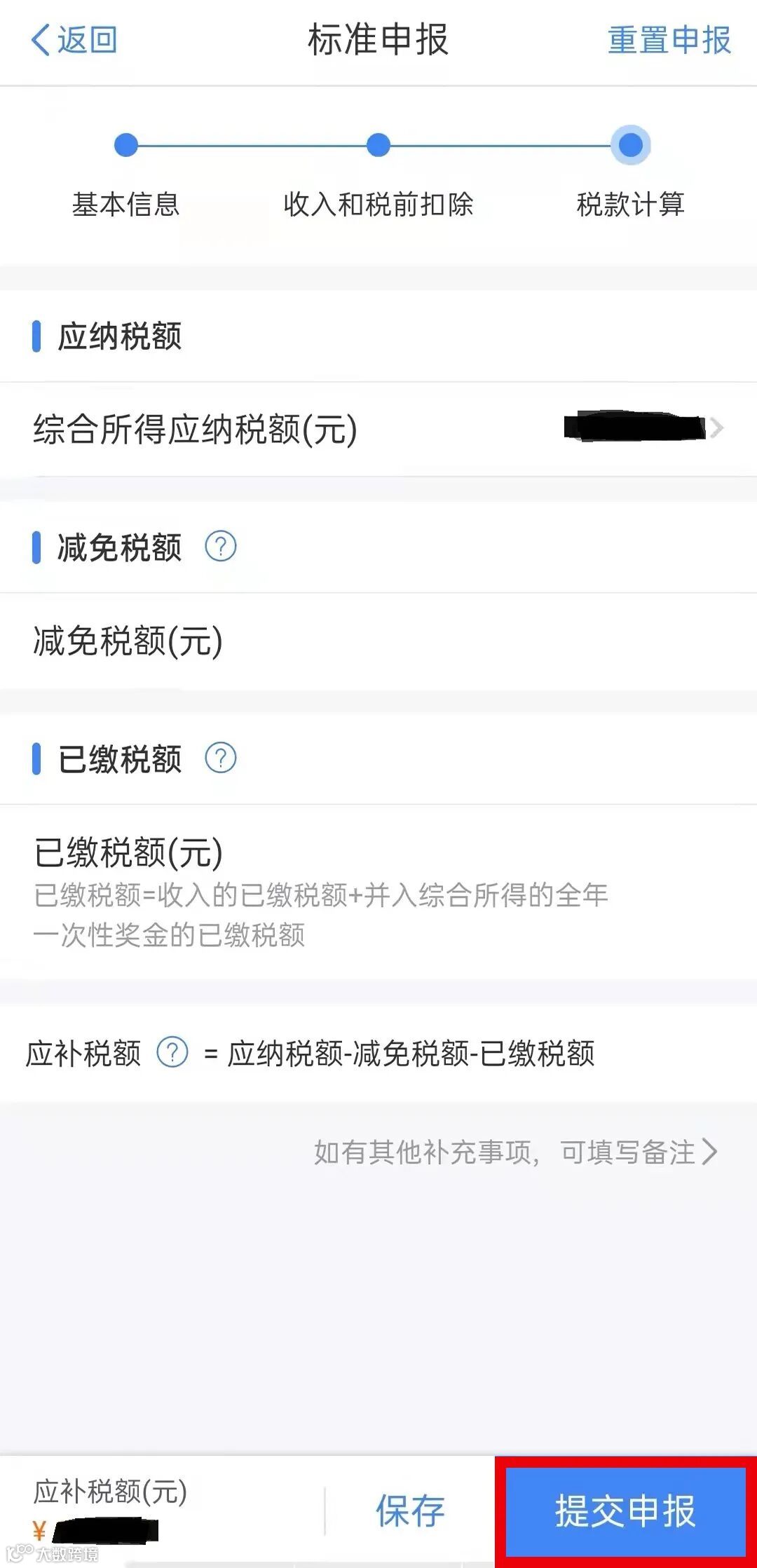 系统将自动计算您本年度综合所得应补或者应退税额。