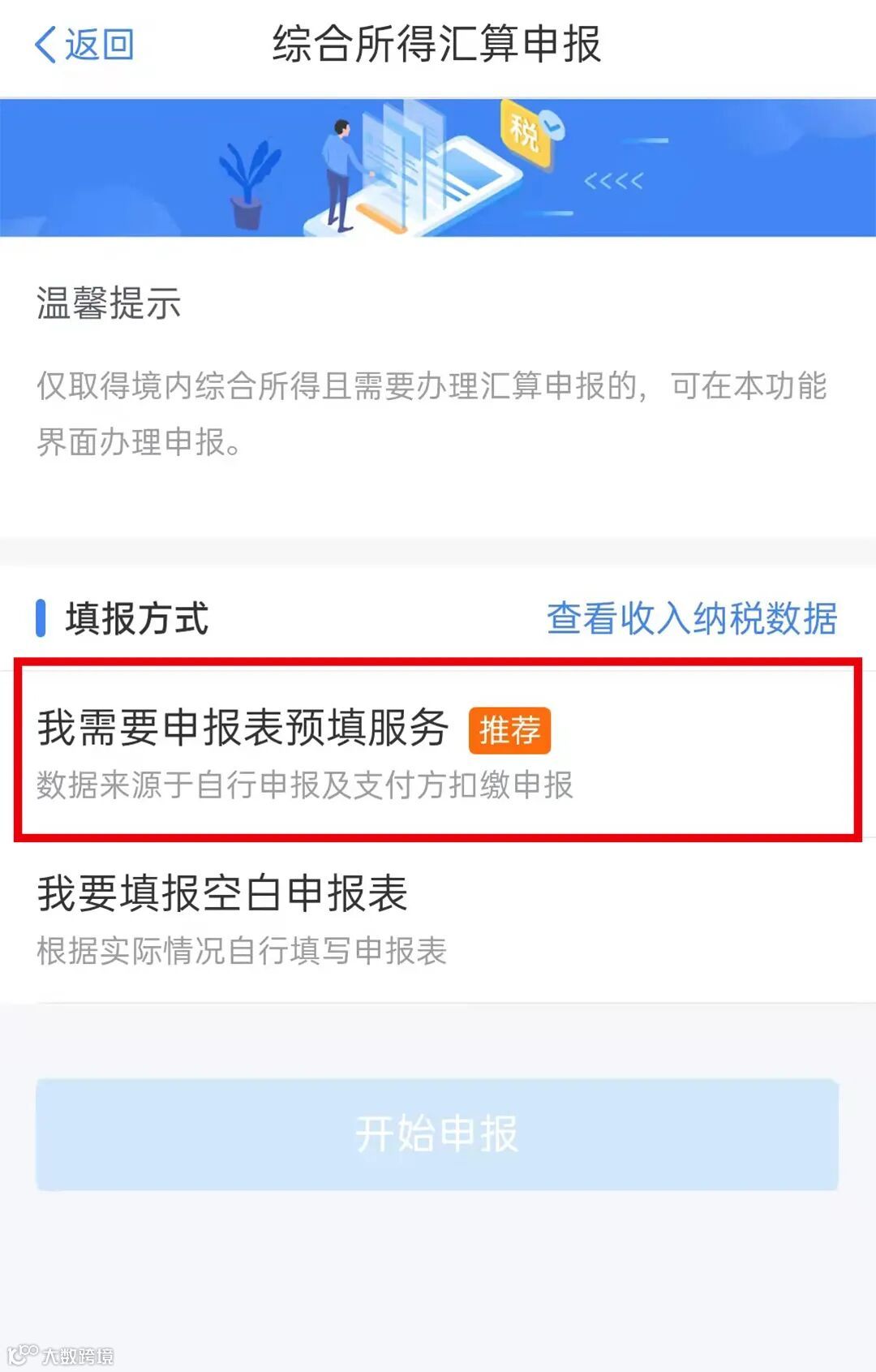 填报方式有两种,推荐选择“我需要申报表预填服务”方式,享受预填报服务,助您快捷办理汇算申报。