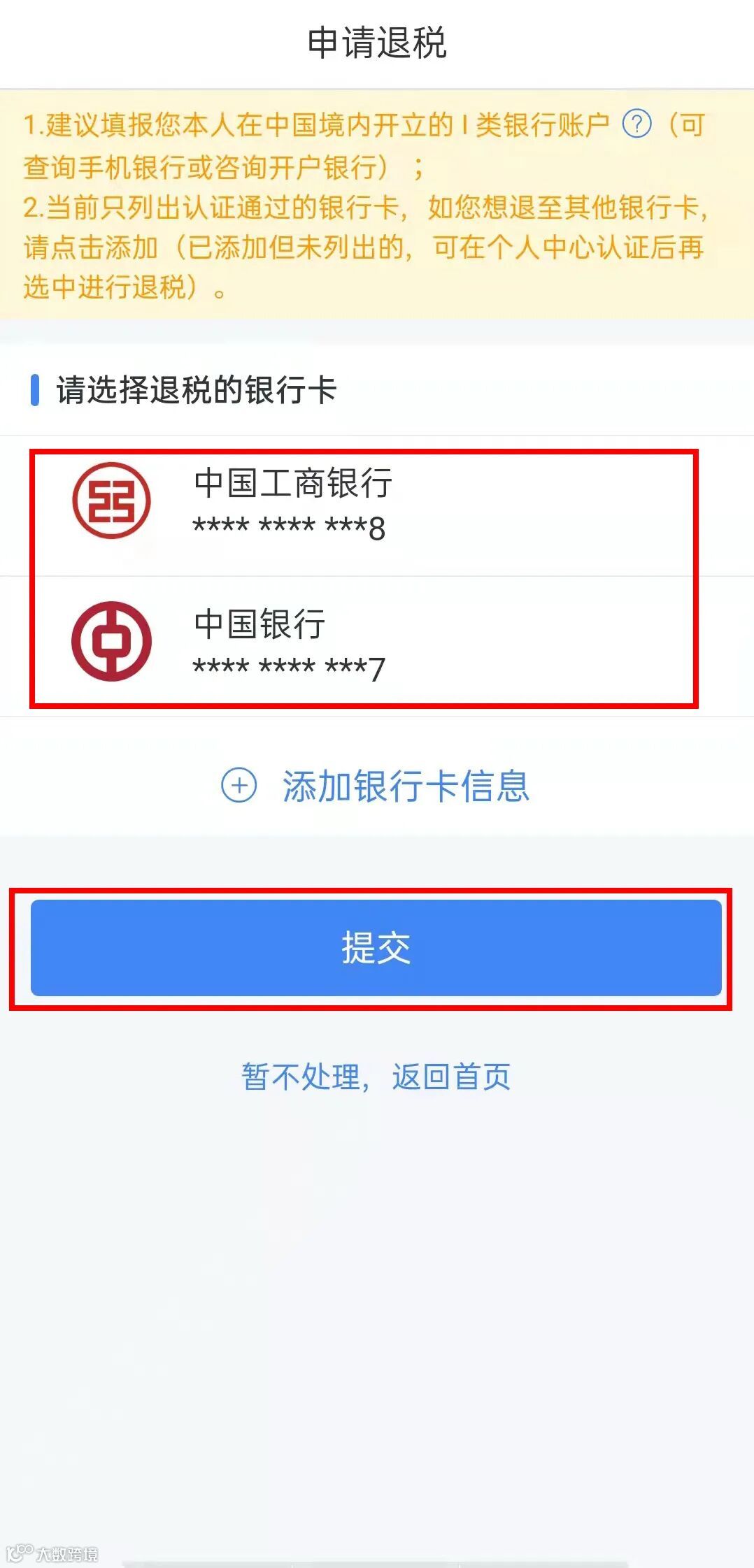 如前期已在APP“个人中心”添加过银行账户信息,系统将自动带出。如需新增,请点击【添加银行卡信息】。