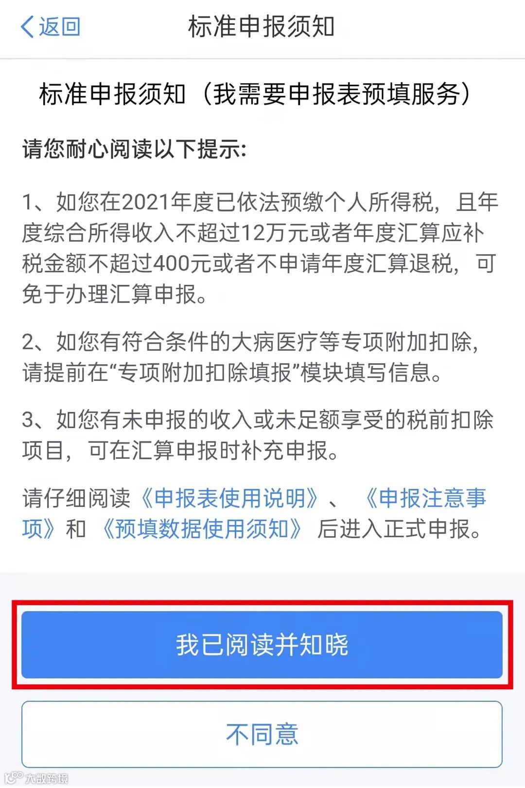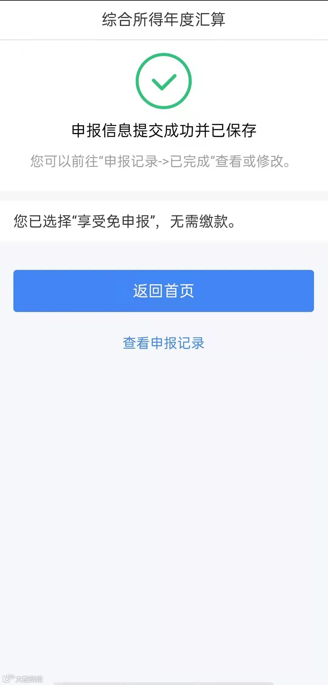 (3)如您的综合所得年收入不超过12万元,或者补税金额不超过400元,且已依法预缴税款的,点击【享受免申报】。