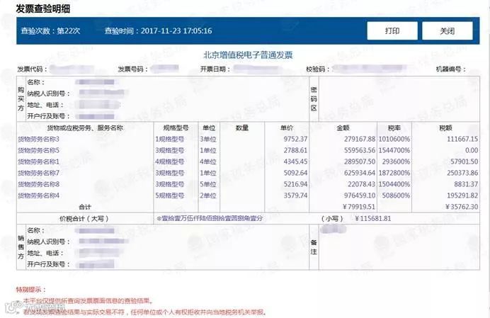 (5)每天每张发票可在线查询次数为5次,超过次数后请于次日再进行查验操作。
