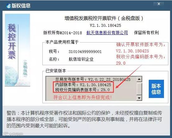 注:开票软件需升级至V2.1.30.180425,税收分类编码版本为29.0,2018年5月1日0时起才可使用新税率及分类编码。