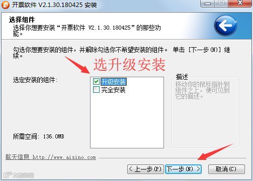 注意:完全安装将会丢失原开票系统的数据千万不要选!