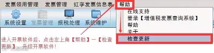 升级方法二:登录开票软件后,使用【检查更新】功能