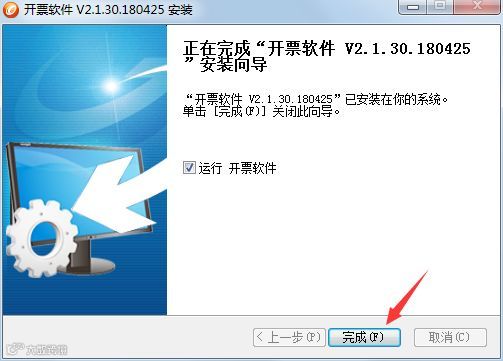 安装时不能打开开票软件,如果有打开开票软件,请退出开票软件后,再运行安装,安装时请按提示点“下一步”直到“完成”