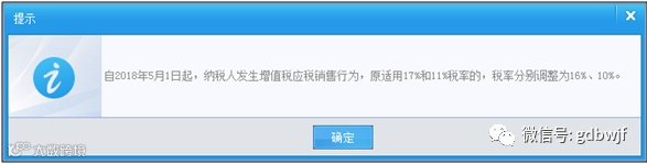 打开开票软件,提示“自2018年5月1日起,纳税人发生增值税应税销售行为,原适用17%和11%税率的,税率分别调整为16%和10%”。