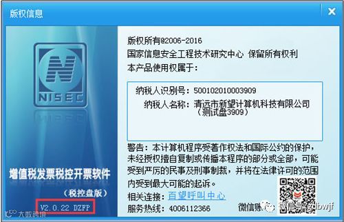 点击“帮助”菜单下的“关于”页面,版本号为V2.0.22DZFP说明升级成功。
