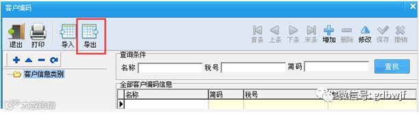 进入开票软件—系统设置,依次打开商品服务税收编码、增值税类商品 编码(如有)及客户编码模块,点击左上角“导出”按钮。选择目标路径保存即可。