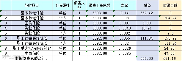 社保缴费减免详细表(蓝色部分为减免的)